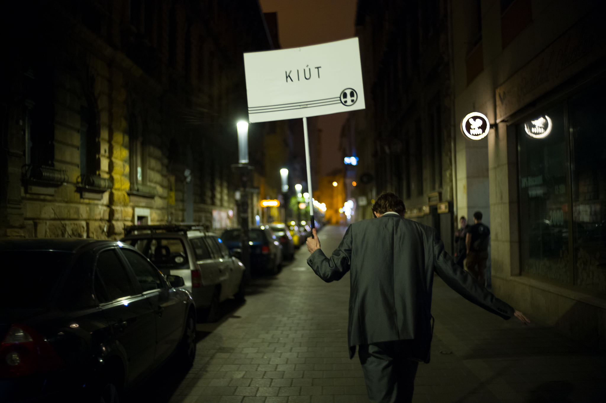 A nézők a kávézó asztalainál és bárszékein ülnek, a színészek közöttük játszanak, akcióznak, és rendszeresen kiszaladnak a Tűzoltó utcára, ahol folytatják…