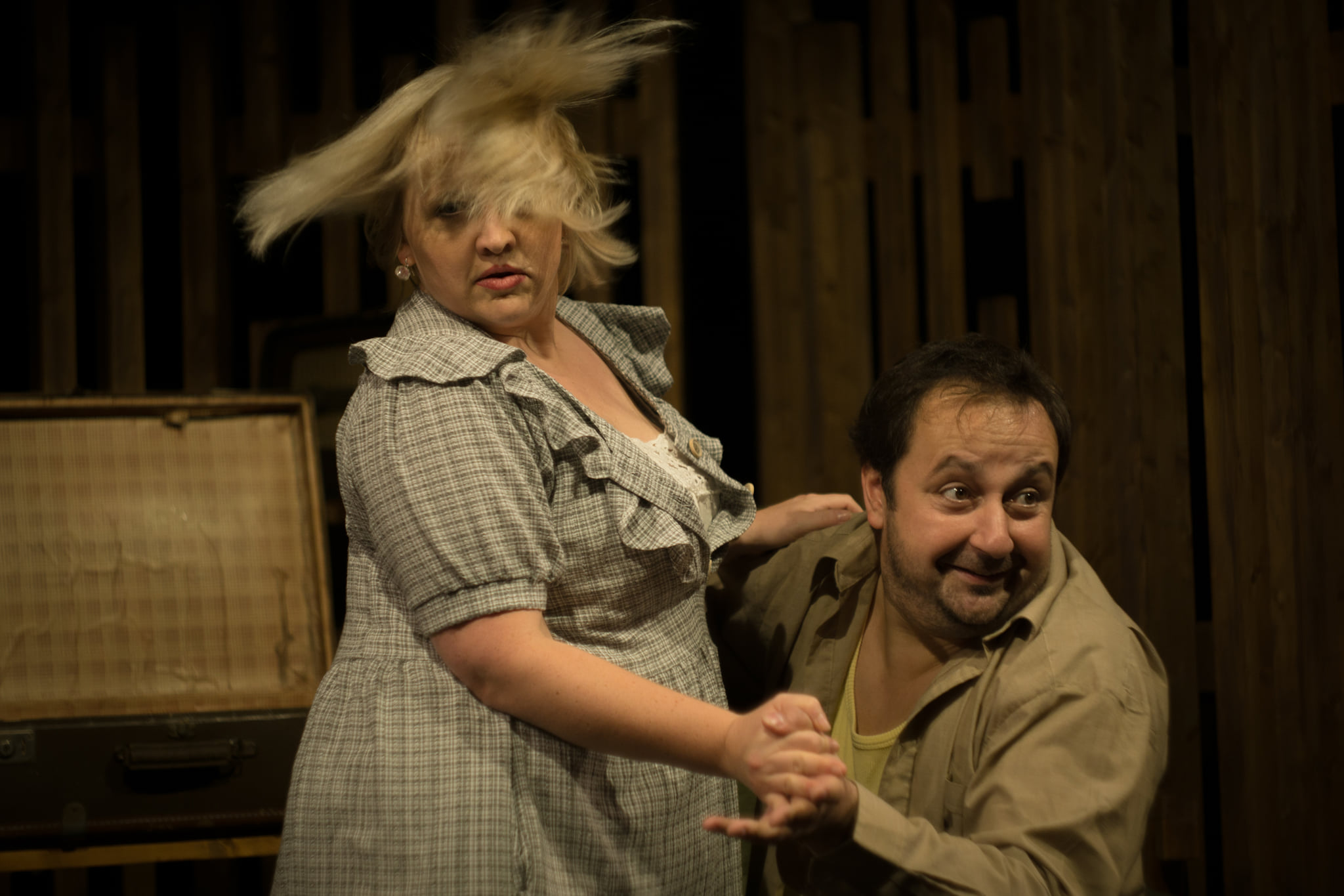 Nem szimplán humorizál (old és ellenpontoz), inkább idézőjelbe teszi, egyben megkísérli önmagukra és ránk is olvasni a darabot.
