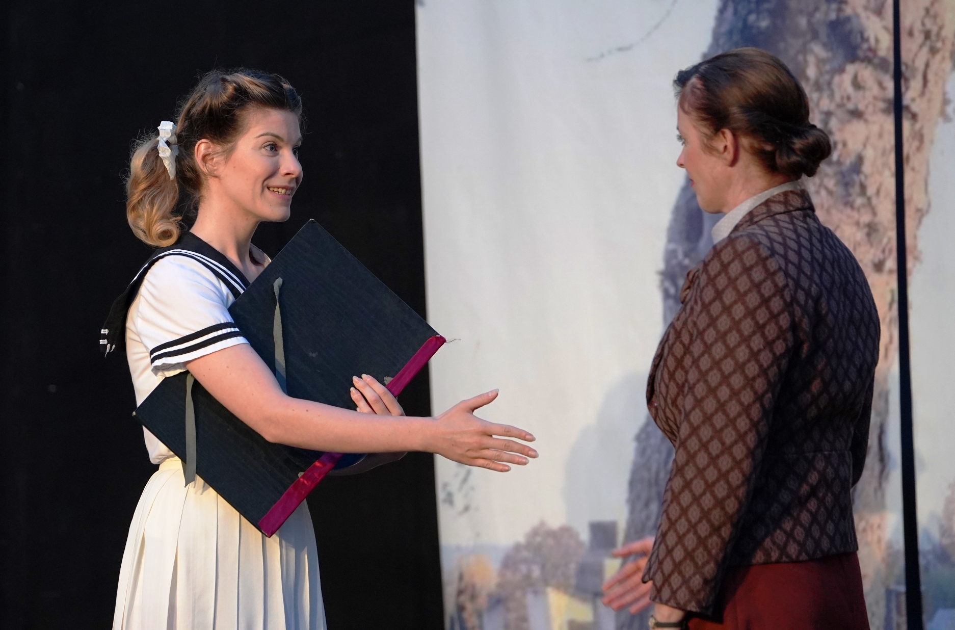 Az előadás ötvözi a monodrámát a többszereplős színművel: rövid jeleneteket látunk a két múltbeli idősíkból, Eszter gyermek- és felnőttkorából.