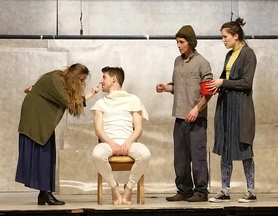 …énekelnek, zenélnek, különböző atmoszférát, hangulatot teremtenek, melyekben a drámaiság mellett az abszurd humor is markáns hangsúlyt kap.